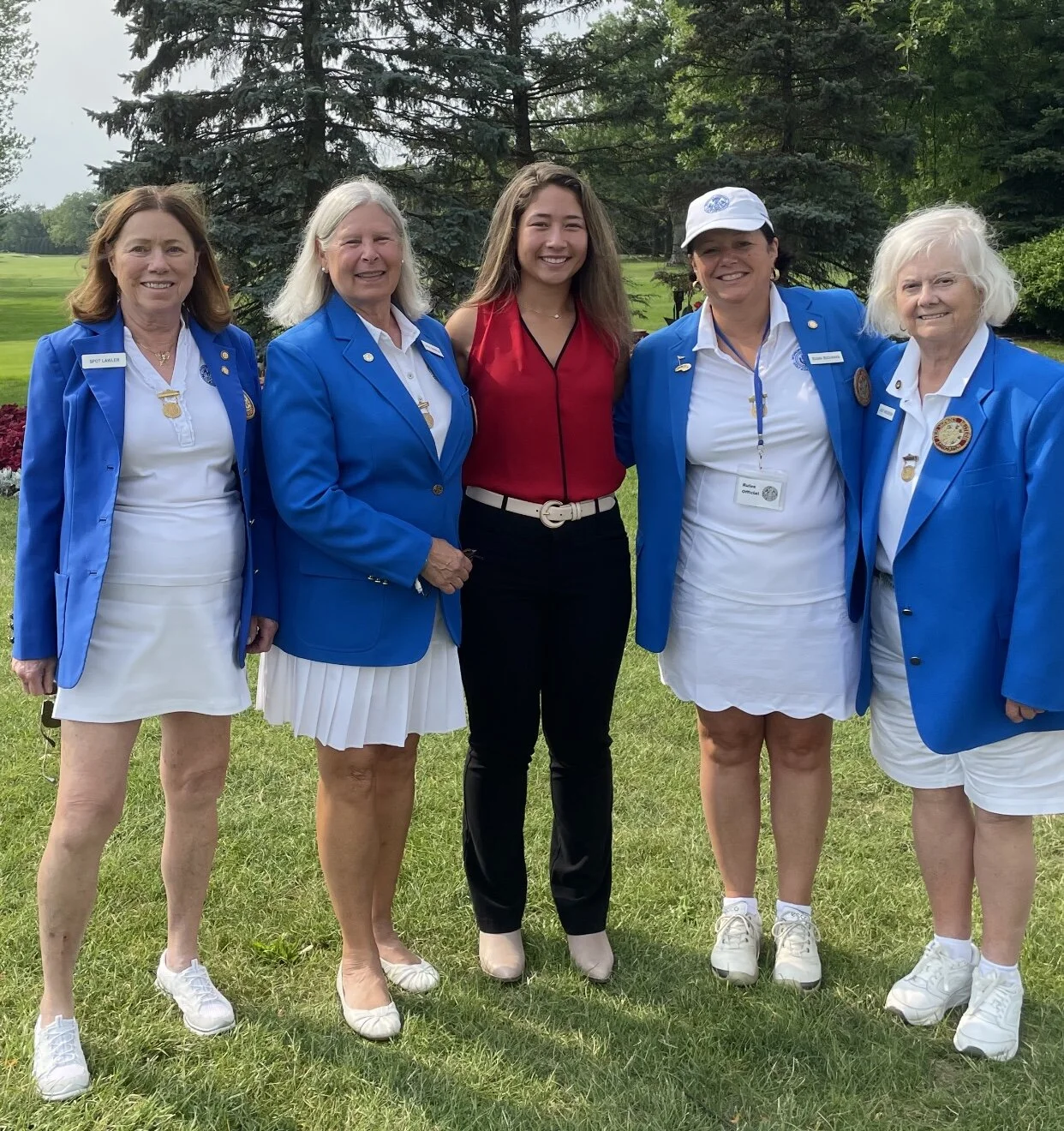 Women’s Western Golf Foundation scholar with Foundation Chairman Cathy Chandler and Foundation Trustees